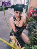 Con il mio nuovo taglio da mora, indosso una giacchetta di pelle e un tanga a filo. Per farti eccitare mi sputo sulle tette e mi strizzo i miei capezzoli con piercing... A pecorina comincio a toccarmi spostando il tanga e poi in varie posizioni mi masturbo fino a venire...!